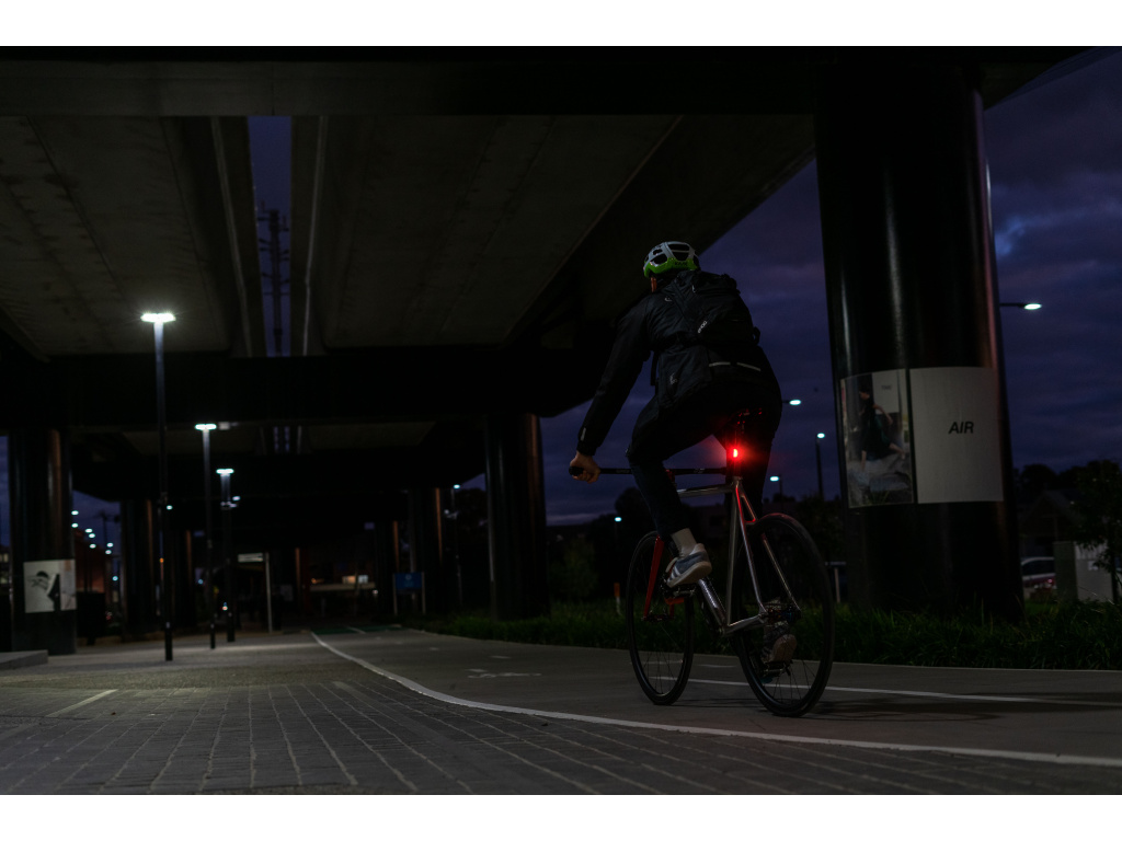 Technologie COB umožňuje uspořádání LED diod na zakřivené desce, která vyzařuje světlo do stran a zvyšuje bezpečnost jezdce.