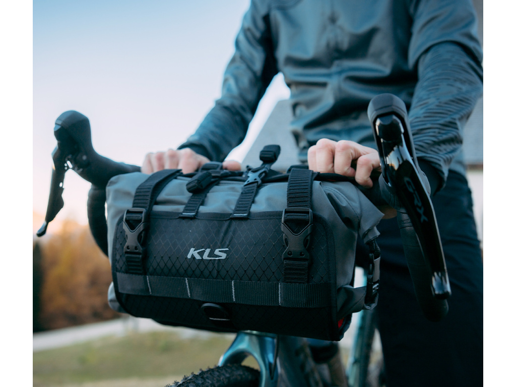 KLS AURA je praktická MTB taška na řídítka, která umožňuje přepravit až 9 litrů nákladu přímo na řídítkách kola, což usnadňuje rovnoměrné rozložení hmotnosti při delších cestách. Je součástí sady tří cyklistických brašen, které optimalizují rozložení nákladu na kole. Je ideální pro přepravu věcí, jako je spací pytel, díky své voděodolné vložce s rolovacím uzavíráním, která spolehlivě chrání obsah před vlhkostí.