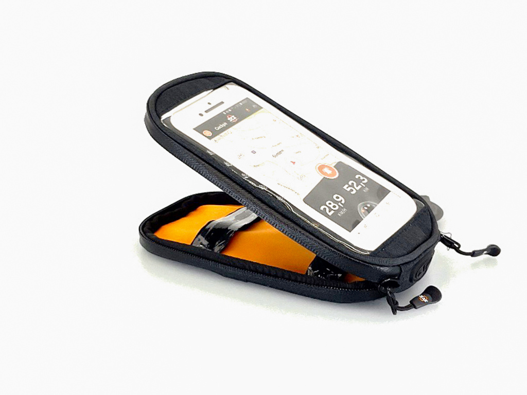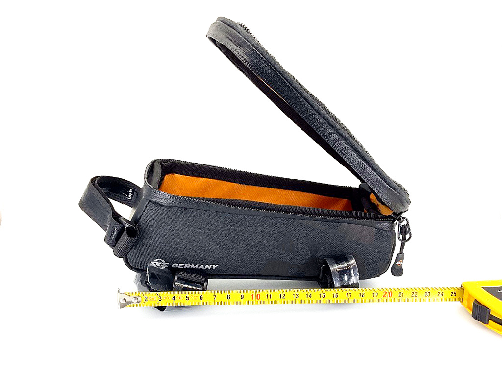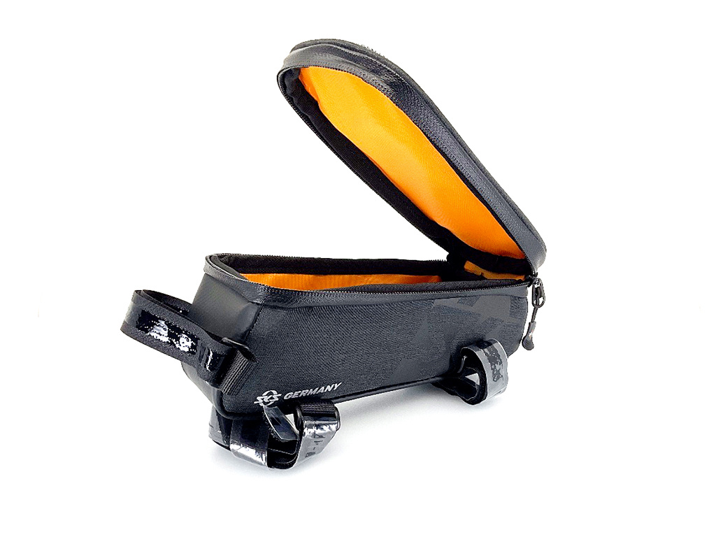 Brašna je připevněna k horní trubce rámu kola pro snadný přístup pomocí robustních, gumovaných suchých zipů. Mezi další vlastnosti patří laminované, voděodolné zipy s ergonomickým EASYZIP systémem, průhledné vnitřní kapsy a oranžová podšívka pro snazší vyhledávání věcí. Nabíječka pro BOSCH Compact Charger se také snadno vejde do brašny. Vhodné pro smartphony s maximálními rozměry 155 x 80 x 15 mm.