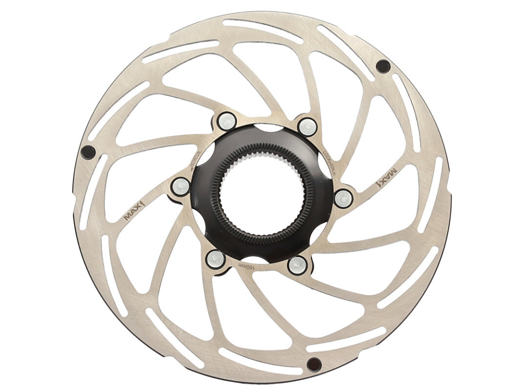 Brzdový kotouč MAX1 Center Lock 160 mm. Kotouč je vyroben z vysoce tepelně odolné oceli 410 STAINLESS STEEL, unašeč steel. Povrchová úprava 42HRC.