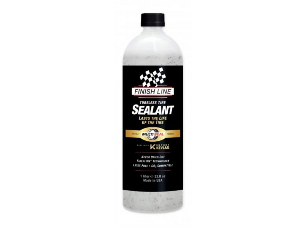 Tubeless Tire Sealant byl vyvinut ve spolupráci s předním výrobcem průmyslových a vojenských tmelů Multi Seal Corp a asi nejzásadnější zprávou je životnost. Tu FinishLine deklaruje po celou dobu životnosti pláště, tmel v plášti nevyschne, není potřeba ho dolévat! Tmel, který neobsahuje latex, naopak obsahuje kevlarová vlákna, díky kterým je schopen zacelit defekt až do velikosti 6 mm. Tmel je možno použít do UST, Tubeless ready, galusek a duší nebo jej lze nalévat přímo do pláště.