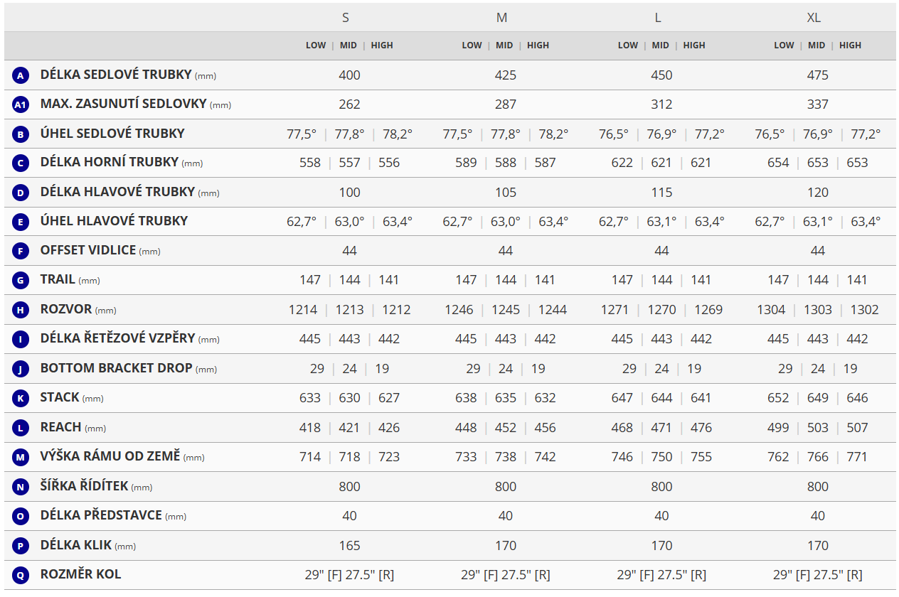 | Průměr kol: | 29"/27.5" před./zad. |