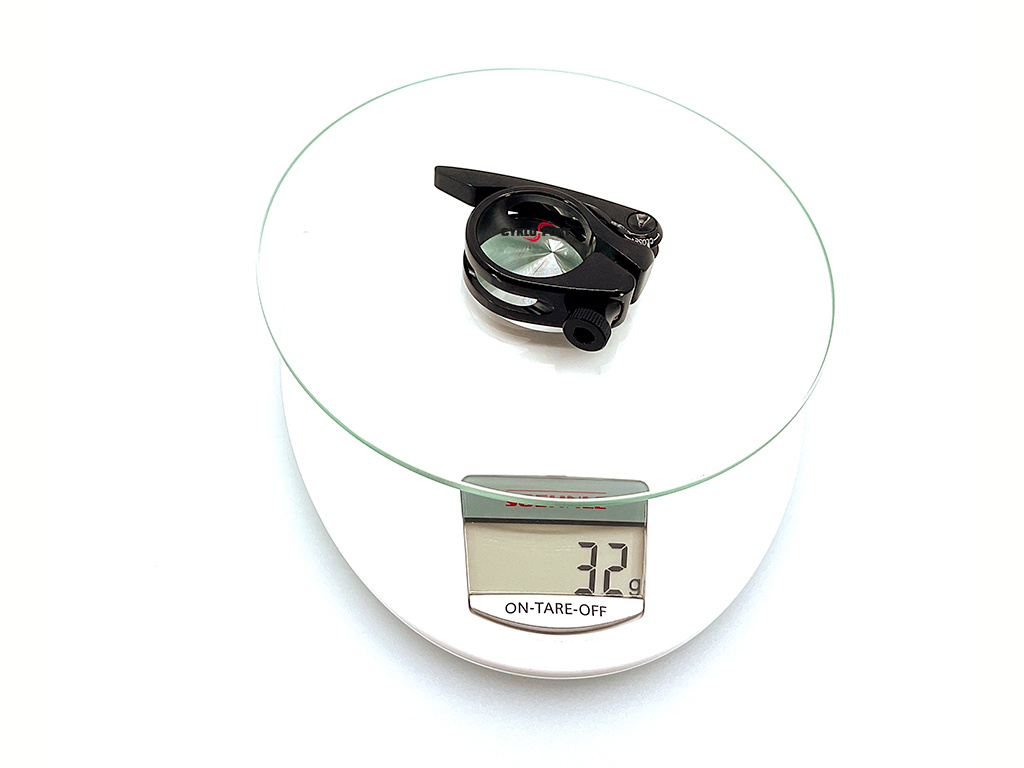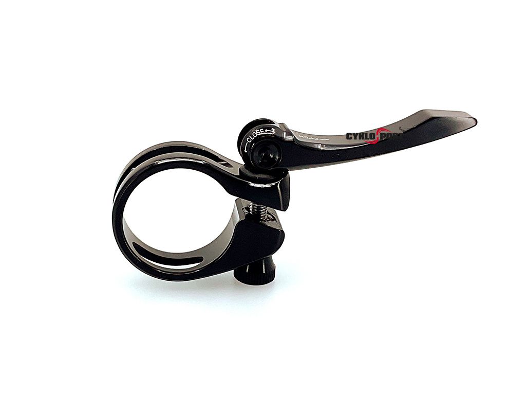 Lehká CNC obráběná objímka s rychloupínákem. 6061 T6 hliník. Pro karbonové i hliníkové sedlovky. Rovnoměrné rozložení upínací síly. Váha: 31 gramů (28,6 mm). Průměry: 28,6, 31,8, 34,9 a 35,8 mm.