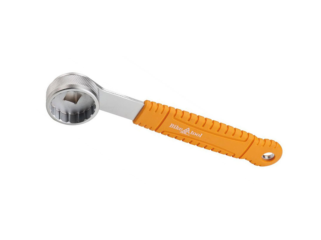 Klíč na montáž a demontáž středového složení Shimano Hollowtech. Stahovák k montáži a demontáži 16-ti drážkových misek středových složení vnějšího průměru 39 mm. 4-hran 3/8 inch pro použití ráčny nebo momentového klíče, madlo potažené měkčeným plastem
