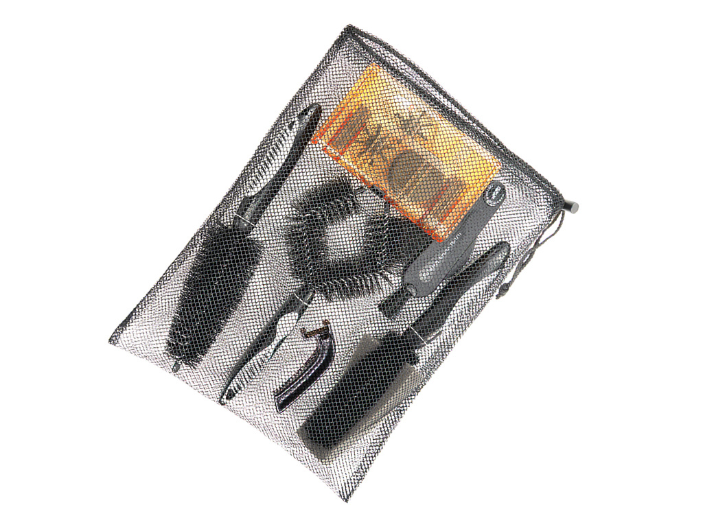 -Funkční kartáče a čisticí nástroj Super B v balení se samostatnou síťovou taškou. -Mimořádná sada čisticího nářadí pro údržbu řetězu, volnoběžky, řetězového kolečka, přesmykače, pláště, prostě celého kola.... -Obsahuje: kartáče TB-1708, TB-1709, TB-1710, TB-1711 a čistič řetězu TB-3208.