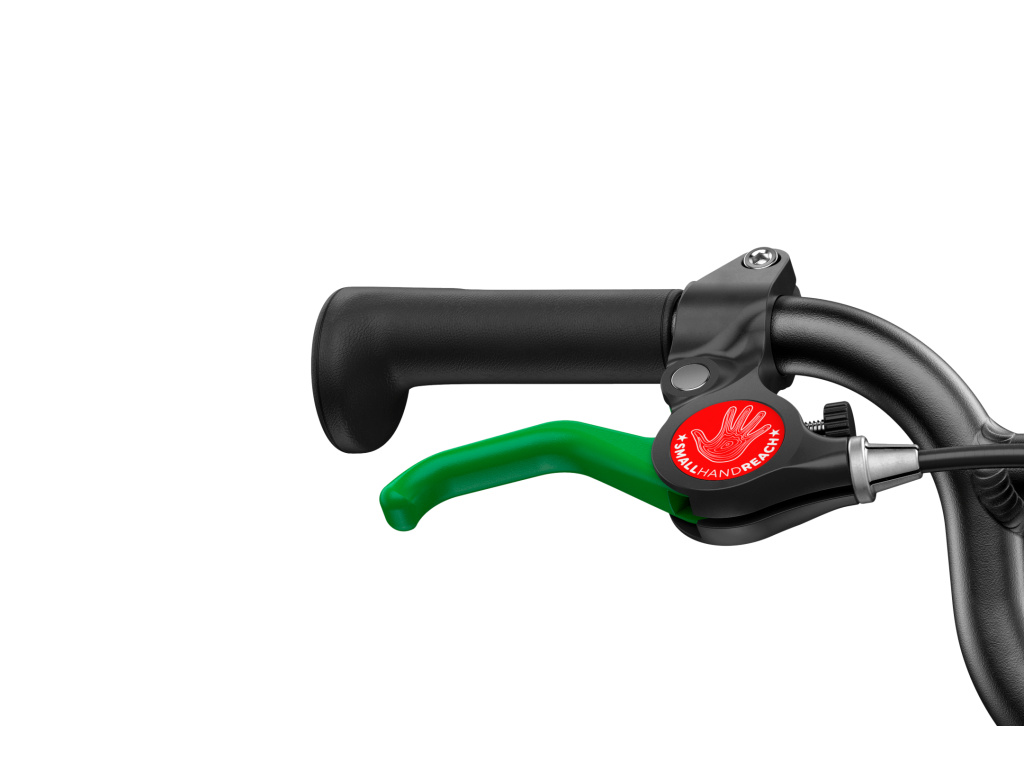 | Brzdy: | dvě navzájem nezávisle ovládané mini V-brzdy s dětským pákovým poměrem | ergonomicky padnoucí brzdová páčka s nastavením rozsahu, vhodná i pro velmi malé dětské ruce | kvalitní bovdeny Jagwire se sníženým třením a lehkým chodem | zadní brzda s nápadně zelenou brzdovou páčkou a stejnobarevným zeleným brzdovým obložením proti záměně brzdy předního a zadního kola |
